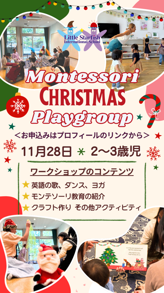 さらに、モンテッソーリ教具体験やクリスマスをテーマにクラフト制作、絵本の読み聞かせなど、英語に自然と触れられるアクティビティもたっぷり!